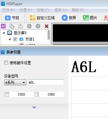點較上面設置--屏參設置---設備型號選擇A6L,如果使用硬件設置前面有勾,就點下勾去掉--寬1920,高1080---確定